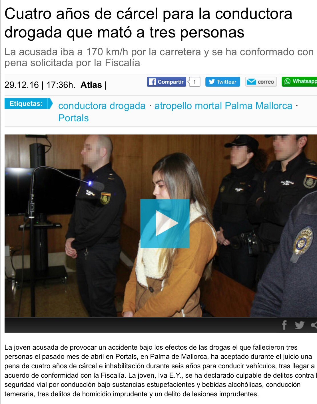 Q barato es matar en España mata a 3 personas por conducir drogada y a 170 km\h así se da ejemplo. Otros delitos menores más penados