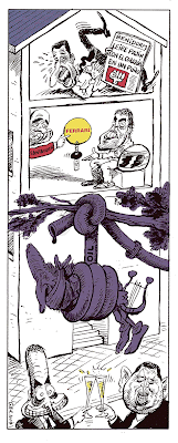 Y políticamente... no traduciré porque se entiende mejor que otros textos que he leído en castellano. De ese lodo sale el barro del descafeinado proceso actual.